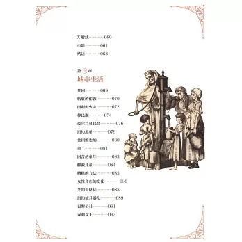 為方便讀者閱讀,本書按照章節順序依次探討了帝國與征服、科技革新、城市生活、健康與疾病、社會風俗、犯罪與懲罰等方面的內容,幫助讀者了解19世紀與英國社會生活有關的方方面面。書中記述了查爾斯·狄更斯、埃德加·艾倫·坡等傳奇人物以及臭名昭著的開膛手傑克的生平故事,真實呈現了激發作家創作靈感,從而構思出科學怪人、吸血鬼德古拉、偵探故事,乃至夏洛克·福爾摩斯這類經典角色的那個時代。