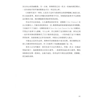 作為一個諷刺的觀察者,迪倫對這些歌曲以及它們背後的精彩人物和故事充滿了感情和熱情。這些文章不僅僅是樂評,它們飽含着智慧、洞察力和獨創性,你仿佛能聽到迪倫的聲音從書頁中浮現出來,有感性的幻想與傾訴,也有理性的解讀與揭露。如美國知名娛樂雜誌Variety所言:“這絕對是有史以來關於流行音樂的最佳書籍之一。”