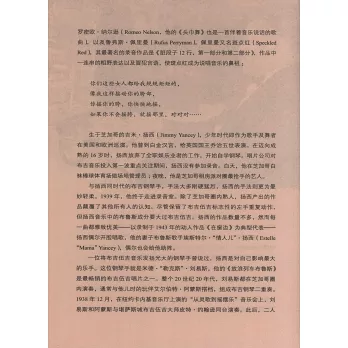 全書囊括9大發展階段、21份藍調大師檔案、近100種知識小百科、200多位行業人物、350余幅精彩圖片,還涉及各種音樂流派、經典曲目,立體呈現了藍調音樂百年曆程,堪稱一部另類視覺的人文變遷史。
