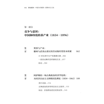 沒有比這更近乎完美的對稱了:最初,來自印度的殖民地官員前往中國,研究中國茶葉的製作方法;在近乎一個世紀后,中國的改革者造訪了印度茶區,並做了同樣的事。帝國的命數變化如何影響茶產業?反過來,茶葉如何在更宏大的政治經濟學議程、國家的發展和對國外資本的抵制中發揮作用?中國與印度的觀察者是如何逐步理解過去數十年來高強度全球整合進程中的衝突與巨變?