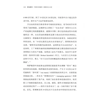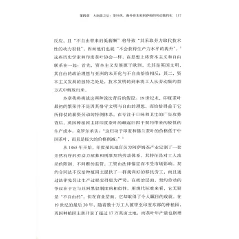 敘事層面外,作者借助斯密、馬克思等大家的理論旁徵博引,旨在論證西方當時在奉行自由思想與市場的理念下,在殖民印度為求利潤與積累,實質卻隱匿地鼓勵着不自由的勞動生產體制。這種思想政治與生產實踐的矛盾,由此反映西歐經典的政治經濟學不具普遍適用性。而中國各派文人學者則在西方經濟政治學思潮與勞動集約型生產實踐的浸潤下,企圖引導東方世界的財富觀、日常生活及經濟思想史在世紀之交的變遷,本書揭示了這種變遷背後複雜、多樣的社會邏輯與理論邏輯。