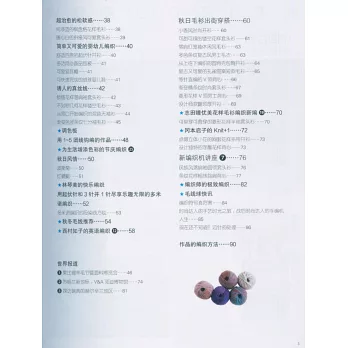 作品包括套頭衫、開衫、斗篷、背心、披肩、圍脖、帽子等,種類豐富,設計精美,風格多樣,既有厚實保暖的居家款,也有靚麗別致的出街遊玩款,還有匠心獨運的職場設計款,更有真絲線材的高級品質款……適合搭配各種秋季服裝。一如既往,書中還有讀者喜愛的世界手工新聞、編織人物專訪、世界手工藝紀行、樂享毛線等板塊,趣味性、實用性兼具。