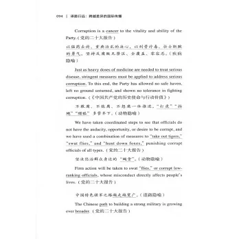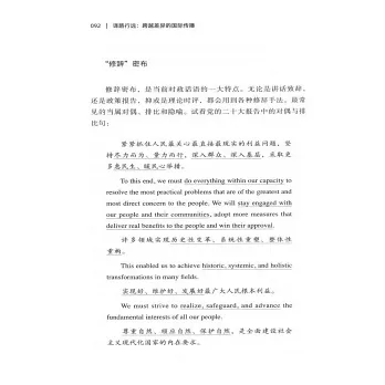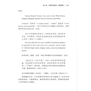 本書從“語言”“敘事”“文化”三個維度分享國際傳播實踐的心得體會,思考對外表達面臨的困境以及如何跨越差異走好國際傳播的“最後一公里”。第一章以媒體視角,從句法、用詞、節奏、細節、修辭、標題等六個方面介紹國際主流英文媒體的話語風格;第二章概括中國時政話語的重要特點,從“外媒視角”“漢學家視角”觀察中國時政話語英譯的難點;第三章聚焦中西“政府觀”差異視域下的國際傳播身份困境與突破之道;第四章淺談以ChatGPT為代表的生成式人工智能技術對翻譯、新聞寫作、社交媒體運營帶來的機遇與挑戰。本書延續作者一貫的視角與風格,細讀外媒,詳說翻譯,希望能啟迪更多的年輕讀者投身翻譯與國際傳播事業。
