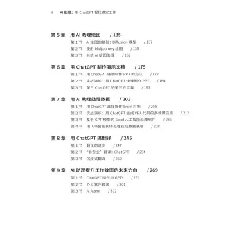 未來必將是一個人人擁有AI助理的時代,提前了解、掌握AI工具的使用方法,我們就會在競爭中領先半個身位。本書結合ChatGPT等已發布的AI工具,從文字處理、繪畫、PPT製作、數據分析、翻譯等多個應用場景切入,詳盡介紹了如何用這些工具來提升工作效率。不管你是職場新人,還是經驗豐富的老手,都可以用本書所講的方法來武裝自己,變身“職場鋼鐵俠”,更好地勝任工作需要,更具有創造力和競爭力。