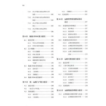 通過閱讀本書,你將:深入理解“監”體系,全鏈路端到端的監控告警、可觀測的服務感知體系。深入理解“管”體系,以應用為中心的CMDB配置管理方法論和數據閉環體系。深入理解“控”體系,通過自動化巡檢、安全基線比對、補丁更新、應用發布、資源自動交付、多雲管理等場景理解企業生產如何降本提效。深入理解“服”體系,從ITSM服務管理到ESM企業服務管理的邏輯演進。深入理解業務連續性保障能力建設,如災備演練、應急服務、重保和護網服務等。深入理解“營”體系,運維度量指標體繫到運營可視化展示的演進過程。深入理解“數”體系,通過運維大數據分析與治理能力建設,理解運維數據治理。深入理解“智”體系,探索智能運維體系的DAO模型,從數據管理、智能分析到場景服務,以及智能運維與生產場景的融合。