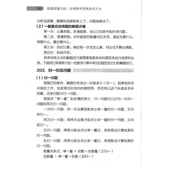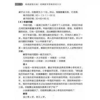 數學思維遊戲是自主性的思維訓練,你可以在閱讀遊戲內容的過程中,鍛煉自己的觀察力和判斷力;在絞盡腦汁尋求答案的過程中,鍛煉自己的分析力和想象力;在一堆看似無用的信息中,找到關鍵的解題線索,得出答案。