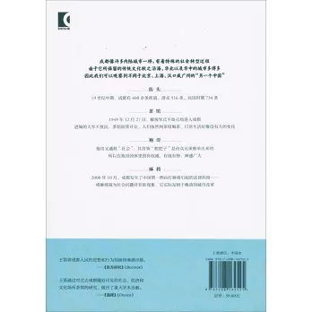 本書是著名歷史學家、中國微觀史研究代表人物王笛教授30年作品精粹。全書以四川地區四個特殊的歷史/文化現象街頭、茶館、袍哥、麻將作為具體個案,將目光投注在小販、茶客、堂倌、甕子匠、普通市民等小人物的身上,通過檔案、口述史、地方誌、小說、竹枝詞、調查、新聞報道、圖片等多種資料,還原了四川,尤其是成都地區的日常生活記憶,細緻入微地繪製了一幅中國腹地大眾公共生活的生動畫卷。通過這種有情的敘事史,人們得以真正深入不同於沿海、華中等城市的“另一個中國”,發現普通民眾充滿活力的生活世界及其頑強的文化延續性。