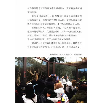 書中精選了中、日、韓三國攝影師拍攝的100多幅福寶和寶家族的高清照片,以及官方獨家授權的福寶回國照片,完整地呈現了福寶的成長史。書末附有豐富的熊貓知識問答,科普大熊貓的生物學特點和生活習性。