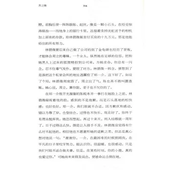 《芥之微》是一部長篇小說。鄭一介和林碧微是愛人,甫出場,已經不再是對等的關係,男人仍舊依戀着女人,在努力工作,在一分一分摳錢要給女人買房子弄個家,女人卻在生活的泥濘中想拔出腳來走人。她嚮往城市的燈紅酒綠,嚮往更高層級的生活。