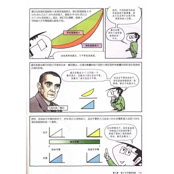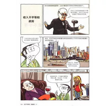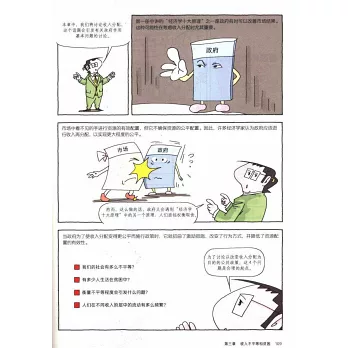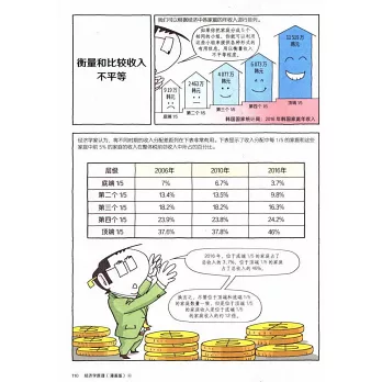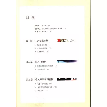 《經濟學原理(漫畫版)④:收入分配和微觀經濟學前沿》共分為5章,重點考察了勞動市場中的幾個關鍵問題。第一章討論了生產要素(勞動、土地和資本)以及市場的基本理論;第二章分析了部分工人工資高於其他人的原因;第三章考察了收入不均的問題,並討論了政府對收入再分配做了什麼以及應該做什麼;第四章幫助我們通過消費者選擇理論全面理解需求曲線;第五章介紹了經濟學中三個最新的領域:信息不對稱、政治經濟學和行為經濟學。