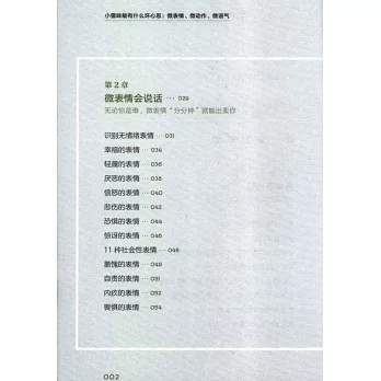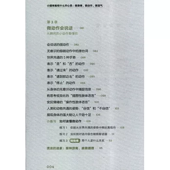 本書從微表情、微動作、微語氣三個方面系統闡述了隱藏在人們面部表情、肢體動作、語言表達背後微妙的心理活動,告訴我們人在內心緊張、動搖、羞愧、戒備等狀況下,身體會流露出哪些微反應,這些微反應能夠幫你準確把握對方的內心世界。本書詳細介紹了微反應背後生動有趣的心理學知識,能夠幫助你理解對方的心理、獲取準確的信息,進而做出有效應對,對於打造融洽的人際關係、提升社交技能大有裨益。
