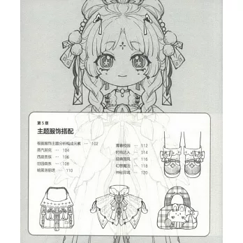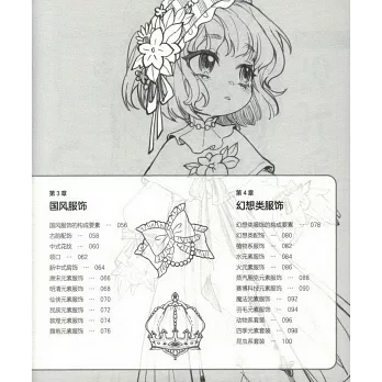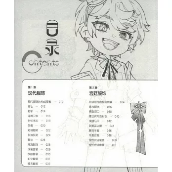 本書共5章。第1章現代服飾,按照背心、襯衫、連帽衛衣、短褲短裙等分類,提供不同風格的現代服飾設計素材;第2章宮廷服飾,按照珠寶配飾、領口、襯衣、束腰等分類,提供不同風格的宮廷服飾設計素材;第3章國風服飾,按照領口、肩飾、不同朝代元素等分類提供國風服飾設計素材;第4章幻想類服飾,按照植物系、水元素、火元素、蒸汽朋克元素等分類,提供幻想類服飾設計素材;第5章主題服飾搭配,按照不同風格、主題設計完整的服飾套裝,為讀者提供創作靈感。