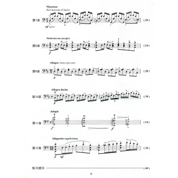 本書作者根據個人練習與教學的實際經驗,有針對性地選擇了對於學生較為實用的指法、弓法等,並在這本教材中對每一首曲目做了簡要的練習提示,進而對這部經典的作品進行了編訂。
