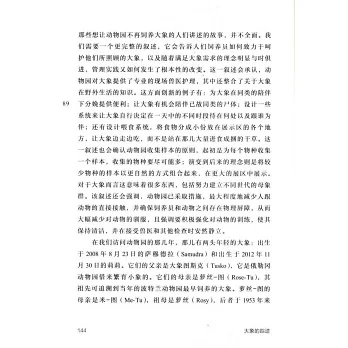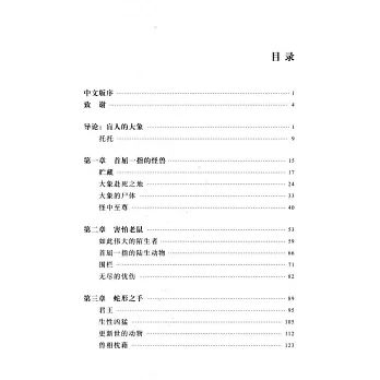 本書是關於大象的形象、觀念演變及大象與人類互動的歷史研究專著。作者認為,自史前時代以來,大象一直是人類理解世界和生活的一部分。全書廣泛搜尋史料,利用市政檔案、動物園記錄、博物館藏品以及與大象生活過的人們的記述等,講述了博物館里一具大象頭骨、20世紀初一頭大象穿過美國南部的照片、關於一頭動物園裡的大象生活質量的辯論、大象狩獵者等故事,探尋過去和晚近關於大象的主要觀點、人類關於動物的想法的起源,構建起關於大象的觀念史。這本書告訴我們大象有其自身的歷史,而對其理解中則反映出人類的歷史與夢想。