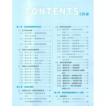 首先,書中介紹了視頻剪輯的基礎知識以及剪映專業版的優勢和界面佈局,為讀者提供了對視頻剪輯的初步瞭解。