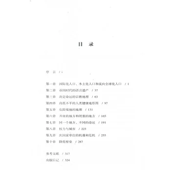 作者採納了全球核心-全球邊緣的地域劃分框架,將全球人口分成國際化人口、本土化人口以及流向全球化人口三類。通過語言、宗教、健康狀況、兩性權利、應對自然災害的能力等方面的對比,本書說明了,地理位置在全球化時代仍然極大地制約了人們的發展,影響了不同地區人們的命運。最後,作者提出了一些意在彌合分歧、讓世界變得更平等的建議。