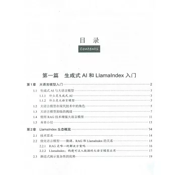 《Llamalndex大模型RAG開發實踐》是一本深入探討基於Llamalndex和RAG技術構建LLM應用和智能體的實踐指南,旨在幫助讀者掌握生成式AI的核心技能。本書介紹了工LM與RAG的概念,闡述了如何通過Uamalndex增強ILM的檢索推理與回答能力。此外,本書還涵蓋了工作流效率提升、RAG項目的定製開發與部署、性能追蹤與評估技術、智能體構建和提示工程實踐等多方面內容。