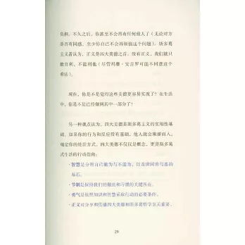 本書強調,真正的幸福不是被動接受,而是通過積極行動去實現。它鼓勵讀者活在當下,關注可控之事。書中指出,儘管時代變遷,但人類面臨的問題和挑戰的本質沒有變。從古羅馬的馬可·奧勒留到今天的我們,無論是戰爭、政治動盪還是個人內心的掙扎,斯多葛主義都能提供一種恒久的生活藝術。它教導我們如何在信息爆炸、消費主義盛行的現代社會中,保持內心的平靜和滿足。這不僅是一本理論豐富的哲學讀本,更是一本行動的召喚。