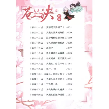 第三冊講述了魔尊東方青蒼和小蘭花為給朔風劍尋找劍鞘,去往妖市。後來二人又前往人間鹿城戰場尋找謝婉清。東方青蒼用法力干預戰爭,幫謝婉清解決了八萬敵軍進攻,但謝婉清還是死於間諜之手。謝婉清死後魂魄離體,小蘭花暫時獲得了她的身體。東方青蒼則因干預凡人命格,引發天雷之罰,與此同時,還有人在暗中對他下咒。此時的東方青蒼既要撐起結界抵禦天雷,同時還要和咒術對抗,有些力不從心。小蘭花協助東方青蒼用陣法破解了咒術。此後,獲得身體的小蘭花迫不及待地離開東方青蒼,結果在山上被兩隻豬妖抓獲。最終,還是東方青蒼解救了小蘭花。這對歡喜冤家後面又發生了哪些有趣又好笑的故事?好戲正在繼續。