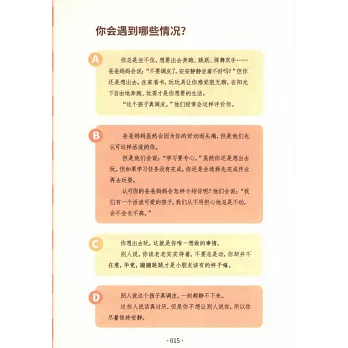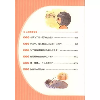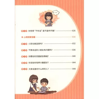 《小學生心理健康100問》,基於美國心理學家艾里克森“關於人格發展八個階段的發展任務和所形成的良好人格品質”的理論,緊緊貼合我國學齡期兒童目前所急需解決的心理問題,和家長在成長教育過程中的困擾,選取了百余個中國家長急需解決的問題進行細緻地分析和解答。