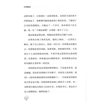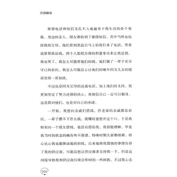 本書作者曾因盲目擴張和決策失誤負債3300萬。從富到負,他經歷了巨大的落差,面對重壓他想過自殺,也有過其他衝動的想法,甚至在決定轉型去直面債務的過程中,又經歷了合作平台攜款跑路、促銷模式下產生種種問題。在起起伏伏的過程中,他遇到了支持他的家人、幫助他的朋友,更重要的是,打擊與沉澱過後,他從一個年少發家飄飄然的膨脹者,變成了一個有擔當有信念、自律勤奮、腳踏實地的創業者。
