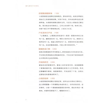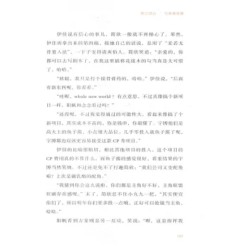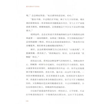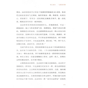 安瀾老師在書中解構了現代都市男女的群像,“離異複合”的碧兒和陸輝、“創業奮鬥”的念念和陽帆、“操盤運籌”的簡欣和雲駒、“成長陪伴”的嫫嫫和傑銘、“傳統磕巴”的小屯和吳戟,以及小田、二紀、子珊。以幾個離散的小故事,分鏡頭、分場景將個性迥異又普遍積極的人聯繫在一起。