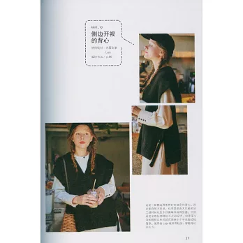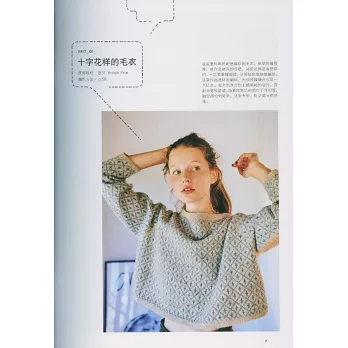本書精選了她的17款編織作品,數量雖然不多,但是每一款都是匠心設計,不落俗套,充滿年輕時尚、朝氣蓬勃的氣息,花樣和造型既獨特又耐看。