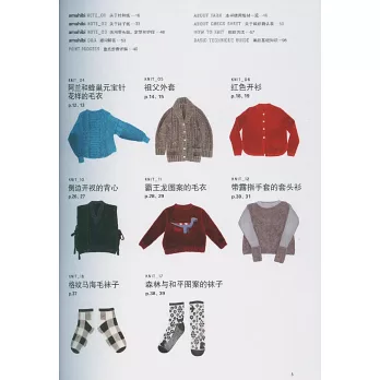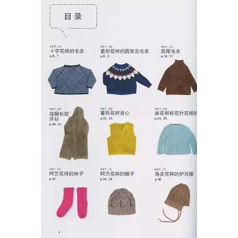 作品包括套頭衫、開衫、背心、襪子、帽子等,有令人驚豔的配色編織,也有經典中帶有創意的阿蘭花樣。