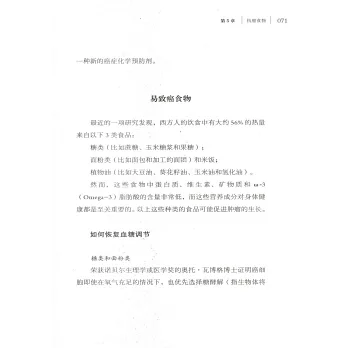 本書深入淺出地介紹了什麼是癌症以及容易造成癌症發生的5大因素(氧化應激、慢性炎症、血管生成、免疫功能缺陷、糖化),提出結合傳統醫學(如化療、放療)與自然療法(如營養、草藥、身心練習)的整合療法,並分別從飲食調整、壓力管理、運動及服用補充劑(如草藥、維生素)、身心調節等7個方面來闡釋。書中還包含具體的練習、飲食計劃和自我評估工具,可以直觀有效地幫助患者個性化地選擇自己的輔助治療方案。