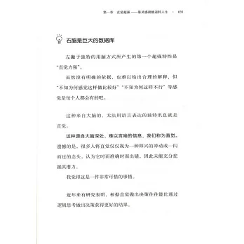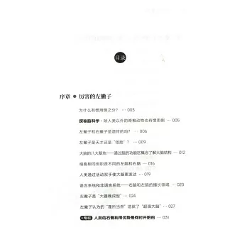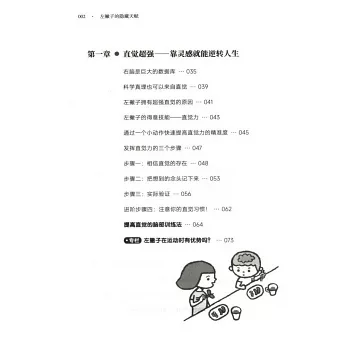 《左撇子的隱藏天賦》由日本腦科學家加藤俊德所著,上市即再版,熱銷15萬冊。作者基於上萬案例的腦科學研究,運用MRI影像解碼左撇子潛能優勢,發現左撇子大腦構造獨特,天生具備超強直覺、無限創意、圖像記憶、緩衝思考四大隱形優勢。書中不僅解答了千萬父母關於左撇子是遺傳還是後天形成、用左手是否會發育遲緩等困惑,還提供了萬次腦部影像實證的大腦訓練法,幫助左撇子將危機化為轉機,同時建議右撇子了解腦部差異,激活未被開發的思維潛能。本書重新定義大腦使用說明書,助你找到優勢腦區,活出天賦才華。