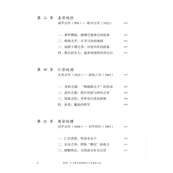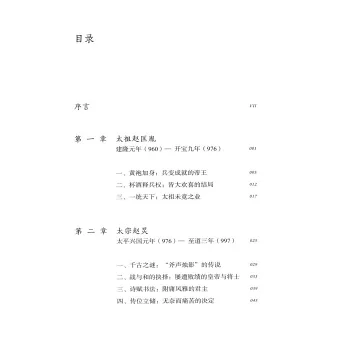 本書用宋朝從開國到滅亡的18位皇帝的人生及經歷的歷史大事件,串聯起從陳橋兵變到崖山之戰滅亡之間的300年宋朝興亡史。從中,我們可以看到諸多宋代的著名議題,例如:重武輕文的政治傳統是怎麼形成的?王安石變法是在何種情況下出台的,尤其是它引發的新舊黨爭究竟是如何導致北宋走上歧途的?靖康之變是怎麼一步步發展而來的?岳飛之死原因何在?是18位皇帝的人生傳記,重點描述他們在位期間經歷的歷史大事件,如太祖的陳橋兵變、太宗的高梁河之戰與雍熙北伐、真宗的泰山封禪、仁宗的慶曆新政、神宗的王安石變法、徽宗的靖康之變等,充分展現每位皇帝在面臨關鍵歷史事件時候的命運抉擇,展現兩宋政治史的發展演變狀況,展現三百年趙宋王朝興衰史。