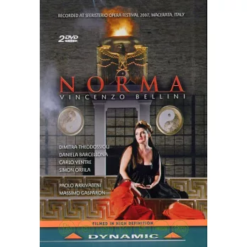 Bellini, unlike many of his colleagues - among them Donizetti - did not have to endure the disappointments and difficulties of rising from the ranks. His Bianca e Gernando, in 1826, was well received at Naples’s Teatro San Carlo, and one year later, at the age of twenty-six, the composer triumphed at Milan’s La Scala with Il Pirata. Norma is not only the high point of Bellini’s artistic parabola but also the quintessence of Italian belcanto. The present DVD, filmed at the Sferisterio Opera Festival of Macerata in August 2007, features, in the title role, the famous Greek soprano Dimitra Theodossiou, one of today’s best interpreters of Norma.