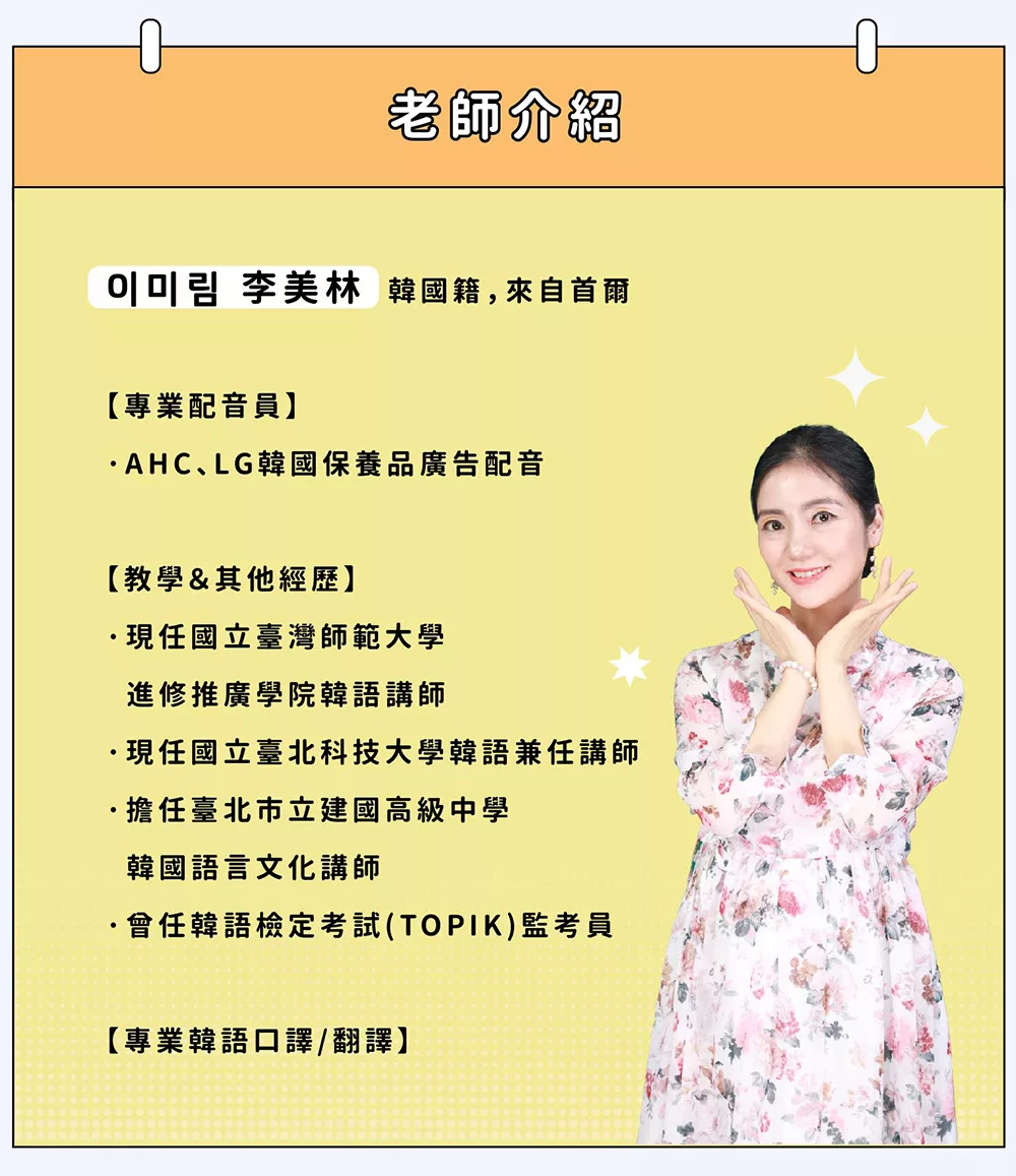 ► 現任國立臺灣師範大學進修推廣學院韓語講師