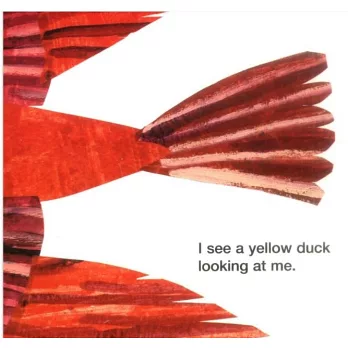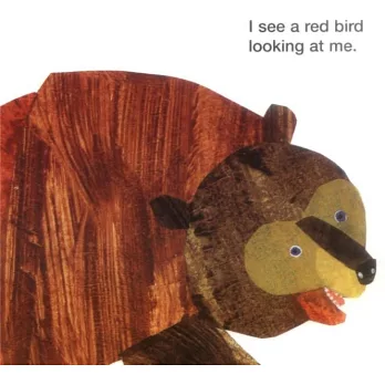 「棕色的熊、棕色的熊,你在看什麼?」「我看見一隻紅色的鳥在看我。」「紅色的鳥、紅色的鳥,你在看什麼?」「我看見一隻黃色的鴨子在看我。」……隨著這樣一問一答的句子、重複的韻律與節奏,一本充滿各種動物與色彩的圖畫書在孩子面前慢慢展開。這是一本備受全世界小朋友喜愛的圖畫書,整本書都是用艾瑞‧卡爾一貫具有創意性的貼畫構成,色調鮮明、活潑。幼小的孩子可以從這本書中學習語法、欣賞預言的節奏性,並學會各種動物的命名,更可以認識顏色,增廣視野。