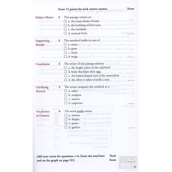 • 全套分為初級、中級、高級三冊,並使用相同的閱讀策略。分別從六個不同的角度切入,幫助讀者提升英文閱讀能力。