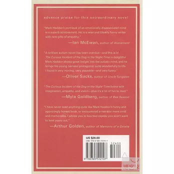 Christopher decides that he will track down the real killer and turns to his favorite fictional character, the impeccably logical Sherlock Holmes, for inspiration. But the investigation leads him down some unexpected paths and ultimately brings him face to face with the dissolution of his parents' marriage. As he tries to deal with the crisis within his own family, we are drawn into the workings of Christopher's mind. And herein lies the key to the brilliance of Mark Haddon's choice of narrator: The most wrenching of emotional moments are chronicled by a boy who cannot fathom emotion. The effect is dazzling, making for a novel that is deeply funny, poignant, and fascinating in its portrayal of a person whose curse and blessing is a mind that perceives the world literally. The Curious Incident of the Dog in the Night-Time is one of the freshest debuts in years: a comedy, a heartbreaker, a mystery story, a novel of exceptional literary merit that is great fun to read.MARK HADDON is a writer and illustrator of numerous award-winning children’s books and television screenplays. As a young man, Haddon worked with autistic individuals. He teaches creative writing for the Arvon Foundation and at Oxford University. He lives in Oxford, England.