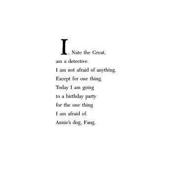 小偵探‧大發現─只要有懸案的地方,就有Nate the Great!Nate實在不想去參加Annie兇猛的狗Fang的生日派對。可是發生了一件大事,Annie的鑰匙不見了,她沒有辦法進屋子去做派對前的準備工作。這又激起了Nate的偵查嗜好,他和小狗展開了搜索行動,這次唯一的線索就是Rosamond寫的一首神秘的詩。然而對Nate與他的夥伴來說沒有什麼事情能夠難倒他們的…