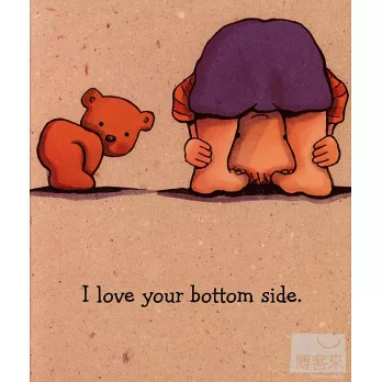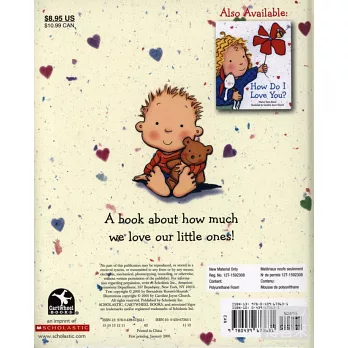 I love your hair and eyes, Your giggles and cries...A toddler and his teddy bear illustrate a young child’s happy side, sad side, silly side, mad side, and more!Babies and toddlers will feel loved all over when they hear this declaration of adoration and affection. A perfect first book for toddlers with sturdy cardstock pages and a padded cover with rounded corners for safe handling by little ones.