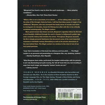 More grand mosaic than linear account, Bergman’s vignettes trace his life from a rural Swedish childhood through his work in theater to Hollywood’s golden age, and a tumultuous romantic history that includes five wives and more than a few mistresses. Throughout, Bergman recounts his life in a series of deeply personal flashbacks that document some of the most important moments in twentieth-century filmmaking as well as the private obsessions of the man behind them. Ambitious in scope yet sensitively wrought, The Magic Lantern is a window to the mind of one of our era’s great geniuses."[Bergman] has found a way to show the soul’s landscape . . . . Many gripping revelations."-New York Times Book Review