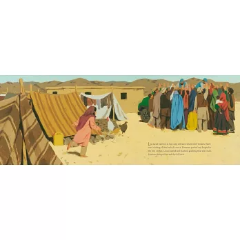 When relief workers bring used clothing to the refugee camp, everyone scrambles to grab whatever they can. Ten-year-old Lina is thrilled when she finds a sandal that fits her foot perfectly, until she sees that another girl has the matching shoe. But soon Lina and Feroza meet and decide that it is better to share the sandals than for each to wear only one.