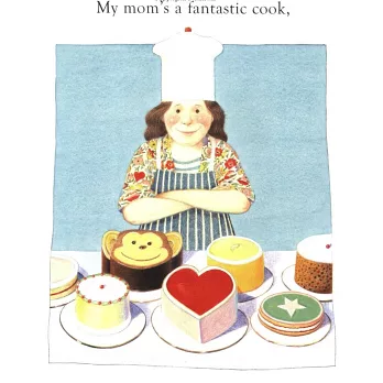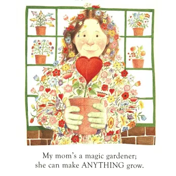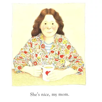 We first meet Mom over a cup of coffee, clad in a floral robe. The robe is ever present as her child describes her wondrous abilities and traits. The ultimate message that shines forth is: "I love my mom. And you know what? SHE LOVES ME! (And she always will.)"