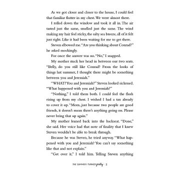 Belly has an unforgettable summer in this stunning start to the Summer I Turned Pretty series from the New York Times bestselling author of To All the Boys I’ve Loved Before (now a major motion picture!), Jenny Han.Some summers are just destined to be pretty.Belly measures her life in summers. Everything good, everything magical happens between the months of June and August. Winters are simply a time to count the weeks until the next summer, a place away from the beach house, away from Susannah, and most importantly, away from Jeremiah and Conrad. They are the boys that Belly has known since her very first summer--they have been her brother figures, her crushes, and everything in between. But one summer, one wonderful and terrible summer, the more everything changes, the more it all ends up just the way it should have been all along.
