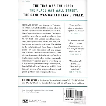 Michael Lewis was fresh out of Princeton and the London School of Economics when he landed a job at Salomon Brothers, one of Wall Street s premier investment firms. During the next three years, Lewis rose from callow trainee to bond salesman, raking in millions for the firm and cashing in on a modern-day gold rush. Liar s Poker is the culmination of those heady, frenzied years a behind-the-scenes look at a unique and turbulent time in American business. From the frat-boy camaraderie of the forty-first-floor trading room to the killer instinct that made ambitious young men gamble everything on a high-stakes game of bluffing and deception, here is Michael Lewis s knowing and hilarious insider s account of an unprecedented era of greed, gluttony, and outrageous fortune."