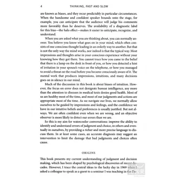 In Thinking, Fast and Slow, Kahneman takes us on a groundbreaking tour of the mind and explains the two systems that drive the way we think and make choices. One system is fast, intuitive, and emotional; the other is slower, more deliberative, and more logical. Kahneman exposes the extraordinary capabilities-and also the faults and biases-of fast thinking, and reveals the pervasive influence of intuitive impressions on our thoughts and behaviour. The importance of properly framing risks, the effects of cognitive biases on how we view others, the dangers of prediction, the right ways to develop skills, the pros and cons of fear and optimism, the difference between our experience and memory of events, the real components of happiness-each of these can be understood only by knowing how the two systems work together to shape our judgments and decisions.