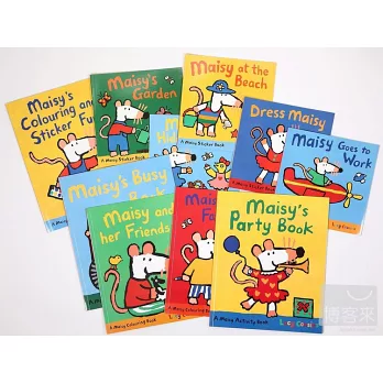《Play with Maisy》歡樂遊戲書包含10本貼紙書、著色本和互動遊戲書: