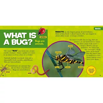The experts at National Geographic present a delightful reference that introduces young children to bugs of all kinds: big and small, jumping and crawling, colorful and creepy. This charming book explores backyard favorites, such as ladybugs and lightning bugs, and introduces kids to more exotic species that inhabit rain forests and deserts around the world. Colorful photos are paired with profiles of each insect, along with facts about the creatures' sizes, diets, homes, and more. This book will quickly become a favorite at storytime, bedtime, and any other time