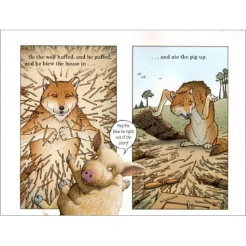 Satisfying both as a story and as an exploration of story, The Three Pigs takes visual narrative to a new level. When the wolf comes a-knocking and a-puffing, he blows the pigs right out of the tale and into a whole new imaginative landscape, where they begin a freewheeling adventure as they wander-and fly-through other stories, encountering a dragon and a cat with a fiddle, among others. This familiar tale will never be the same old story again.