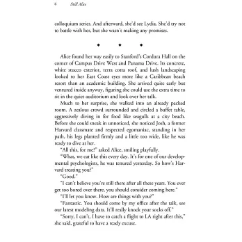 哈佛大學神經科學博士,研究主題是憂鬱症之分子病 因、帕金森氏症、藥癮、中風引發之記憶喪失等。她積極參與國際失智症支持網絡與美國失智症協會,也是美國阿茲海默症協會網站專欄作家。此外,她經常參與波 士頓地區舞台劇與獨立製片電影的演出。《我想念我自己》是她的第一部小說,目前也著手撰寫下一部小說。潔諾娃和家人定居麻薩諸塞州。