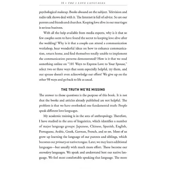 The 5 Love Languages is as practical as it is insightful. Updated to reflect the complexities of relationships today, this new edition reveals intrinsic truths and applies relevant, actionable wisdom in ways that work.