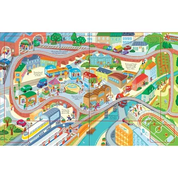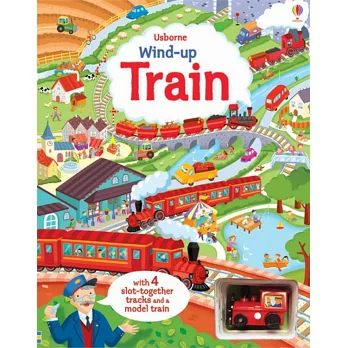 A toy and a book in one, this large, chunky board book comes with a wind-up toy steam train. Wind the train up and set in on the embedded track in each page to see it chugging along through the countryside. Each of the four tracks is removable, and together they combine to make one giant train track.